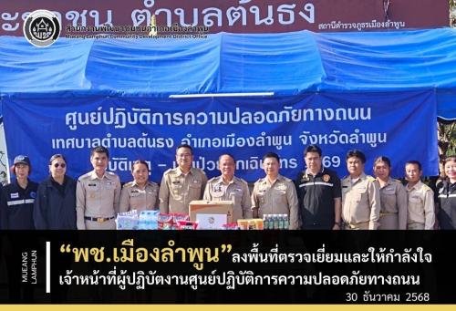 วันอังคารที่ 30 ธันวาคม 2568 เวลา 13.00 น. ณ ศูนย์ปฏิบัติการความปลอดภัยทางถนนตำบลต้นธง ตำบลเหมืองจี้ ตำบลบ้านกลาง และตำบลเหมืองง่า อำเภอเมืองลำพูน จังหวัดลำพูน นายดลภาค เนตรใส นายอำเภอเมืองลำพูน พร้อมด้วยปลัดอำเภอ และเจ้าหน้าที่ ลงพื้นที่ตรวจเยี่ยม พร้อมมอบสิ่งของให้กำลังใจเจ้าหน้าที่ผู้ปฏิบัติงานศูนย์ปฏิบัติการความปลอดภัยทางถนนอำเภอเมืองลำพูน จังหวัดลำพูน