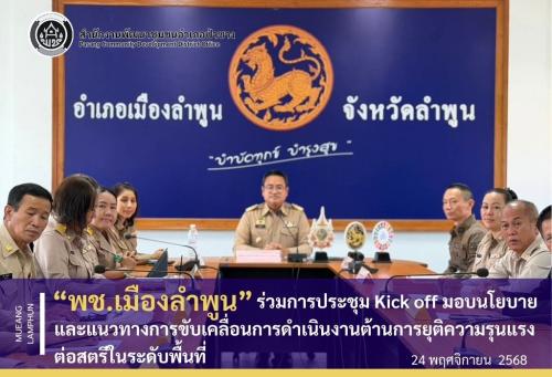 พช.เมืองลำพูน ร่วมการประชุม Kick off มอบนโยบายและแนวทางการขับเคลื่อนการดำเนินงานด้านการยุติความรุนแรงต่อสตรีในระดับพื้นที่