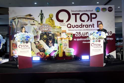 นายพิเชิด โปธิมา ผู้อำนวยการกลุ่มงานส่งเสริมการพัฒนาชุมชน กล่าวรายงานว่า กรมการพัฒนาชุมชนได้จัดสรรงบประมาณ ในการดำเนินโครงการพัฒนาผลิตภัณฑ์ OTOP กลุ่มปรับตัวสู่การพัฒนา (Quadrant D) ให้มีคุณภาพมาตรฐาน โดยมีวัตถุประสงค์เพื่อพัฒนายกระดับคุณภาพมาตรฐานผลิตภัณฑ์ OTOP กลุ่มปรับตัวสู่ การพัฒนา (Quadrant D) ให้มีศักยภาพทางการตลาดเพิ่มขึ้น เพื่อพัฒนาทักษะผู้ผลิต ผู้ประกอบการ OTOP ให้มีความรู้ความสามารถในการพัฒนาผลิตภัณฑ์ให้มีมูลค่าเพิ่มสูงขึ้น และเพื่อเพิ่มช่องทางการตลาดให้กับผลิตภัณฑ์ OTOP กลุ่มปรับตัวสู่การพัฒนา (Quadrant D)