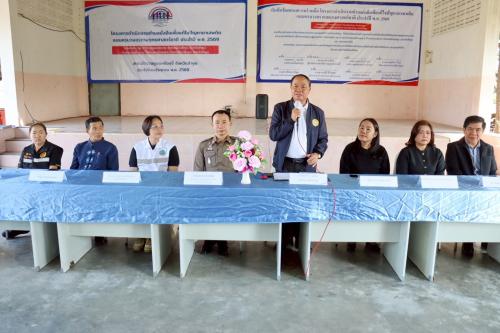 วันพุธ ที่ 11 เดือนกุมภาพันธ์ พ.ศ.2569 ณ โรงเรียนวัดหนองเหียง หมู่ที่ 5 ตำบลหนองหนาม อำเภอเมืองลำพูน จังหวัดลำพูน นางสาวสุพัตรา วันนู พร้อมด้วยเจ้าหน้าที่พัฒนาชุมชนอำเภอ เข้าร่วมโครงการดำเนินงานตำบลยั่งยืนเพื่อแก้ไขปัญหายาเสพติดแบบครบวงจรตามยุทธศาสตร์ชาติ ประจำปี 2569 และร่วมบันทึกข้อตกลงความร่วมมือ โครงการดำเนินงานตำบลยั่งยืนเพื่อแก้ไขปัญหายาเสพติดแบบครบวงจร ตามยุทธศาสตร์ชาติ ของสถานีตำรวจภูธรเหมืองจี้ จังหวัดลำพูน โดยมีนายดลภาค เนตรใส นายอำเภอเมืองลำพูน เป็นประธานในพิธี ฯ พร้อมด้วย หัวหน้าส่วนราชการ ผู้บริหารองค์การปกครองส่วนตำบลหนองหนาม เจ้าหน้าที่ตำรวจ กำนัน และผู้ใหญ่บ้าน เข้าร่วมโครงการฯ ในครั้งนี้