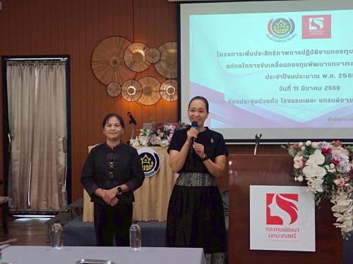 วันพุธที่ 11 มีนาคม 2569 เวลา 08.30 น. ณ ห้องประชุมบัวแก้ว แกรนด์จามจุรี รีสอร์ทนายดลภาค เนตรใส นายอำเภอเมืองลำพูนเป็นประธานเปิดโครงการเพิ่มประสิทธิภาพการปฏิบัติงานกองทุนพัฒนาบทบาทสตรีแก่กลไกการขับเคลื่อนกองทุนพัฒนาบทบาทสตรีระดับอำเภอ โดยมี นางสาวสุพัตรา วันนู พัฒาการอำเภอเมืองลำพูน กล่าวรายงานวัตถุประสงค์ มีเจ้าหน้าที่พัฒนาชุมชน และคณะทำงานขับเคลื่อนกองทุนพัฒนาบทบาทสตรี เข้าร่วมโครงการฯ ในครั้งนี้