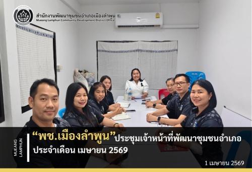 วันพุธที่ 1 เมษายน 2569 ณ สำนักงานพัฒนาชุมชนอำเภอเมืองลำพูน จังหวัดลำพูน นางสาวสุพัตรา วันนู พัฒนาการอำเภอเมืองลำพูน ประชุมเจ้าหน้าที่พัฒนาชุมชนอำเภอ ประจำเดือน เมษายน 2569 เพื่อเตรียมความพร้อมรองรับการขับเคลื่อนกิจกรรมตามยุทธศาสตร์กรมการพัฒนาชุมชน ไตรมาสที่ 3 ประจำปีงบประมาณ พ.ศ. 2569 งานตามภารกิจของกรมการพัฒนาชุมชน และนโยบายสำคัญเร่งด่วนที่ได้รับมอบหมายให้เป็นไปตามเป้าหมายและห้วงเวลาที่กำหนด
